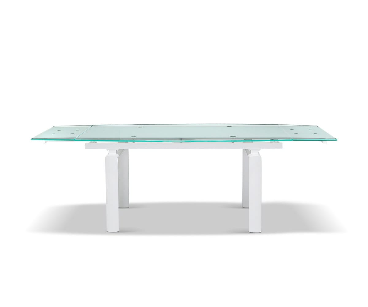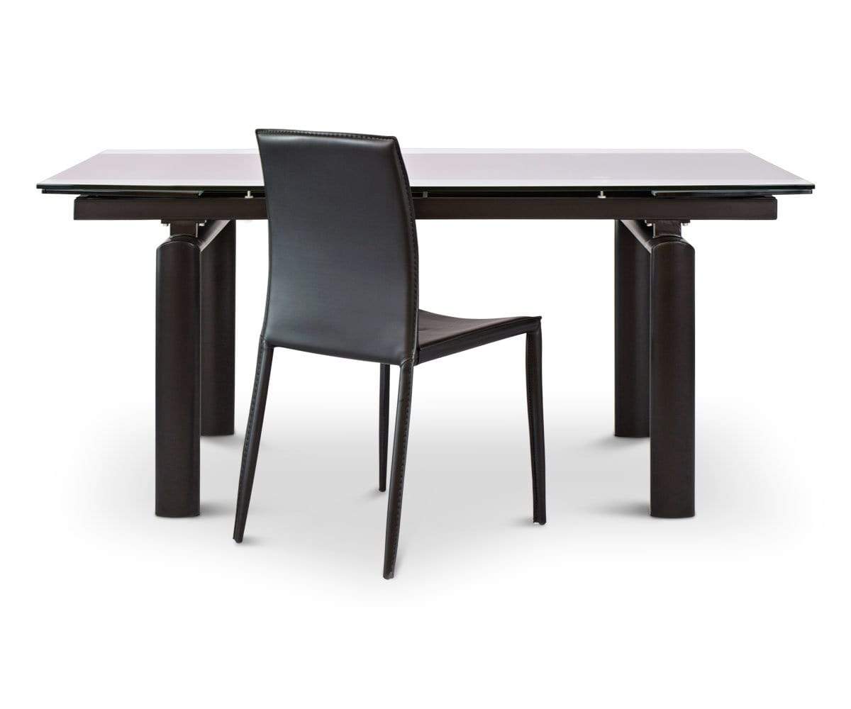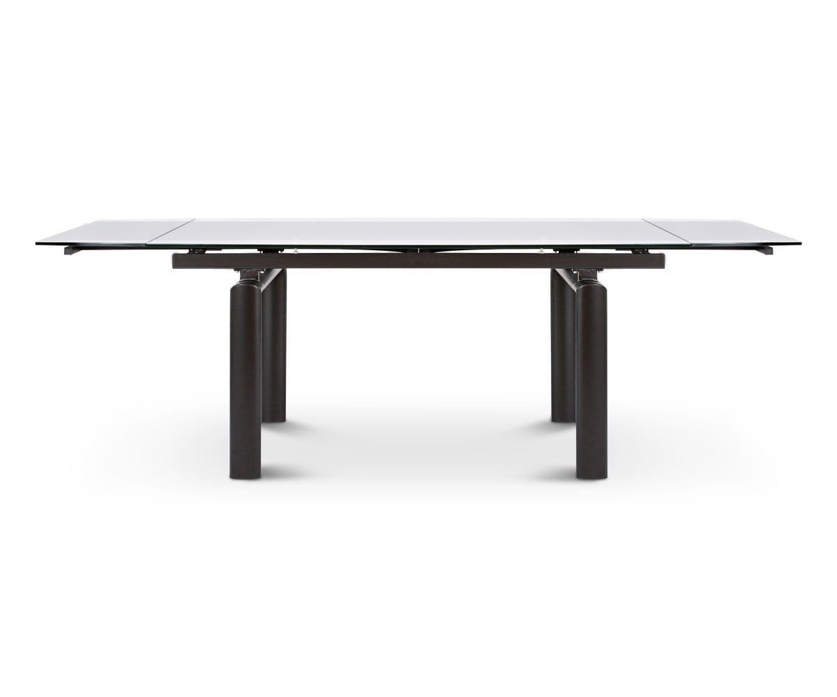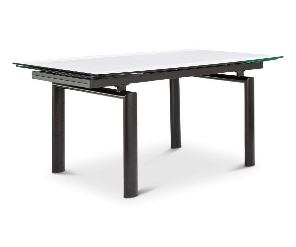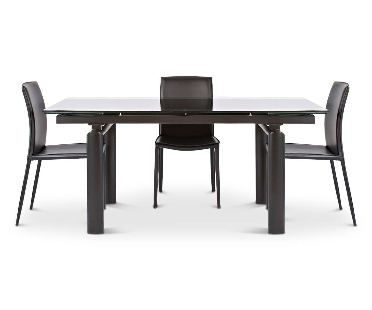 Solid, tempered glass and an angular, metal frame imbue your dining space with a sleek modern aesthetic. Plus, the Hispi can be extended with two leaves to seat up to eight!