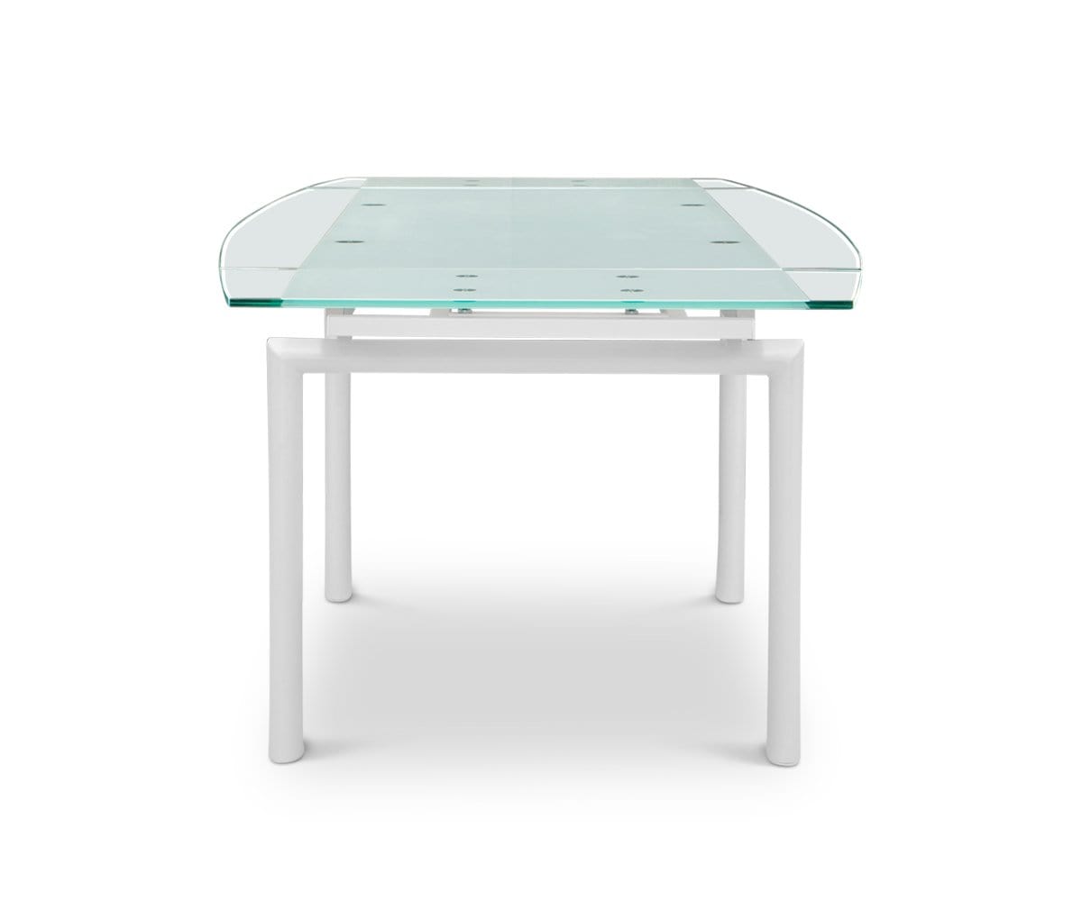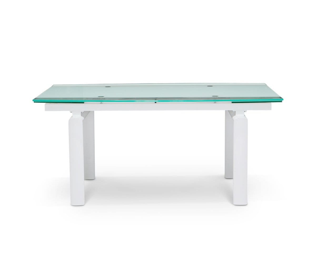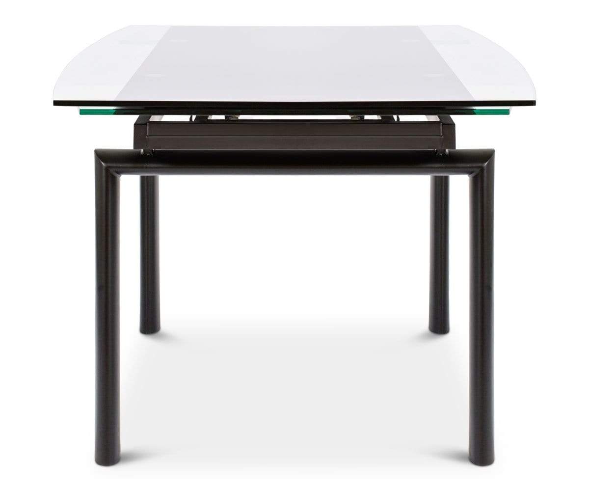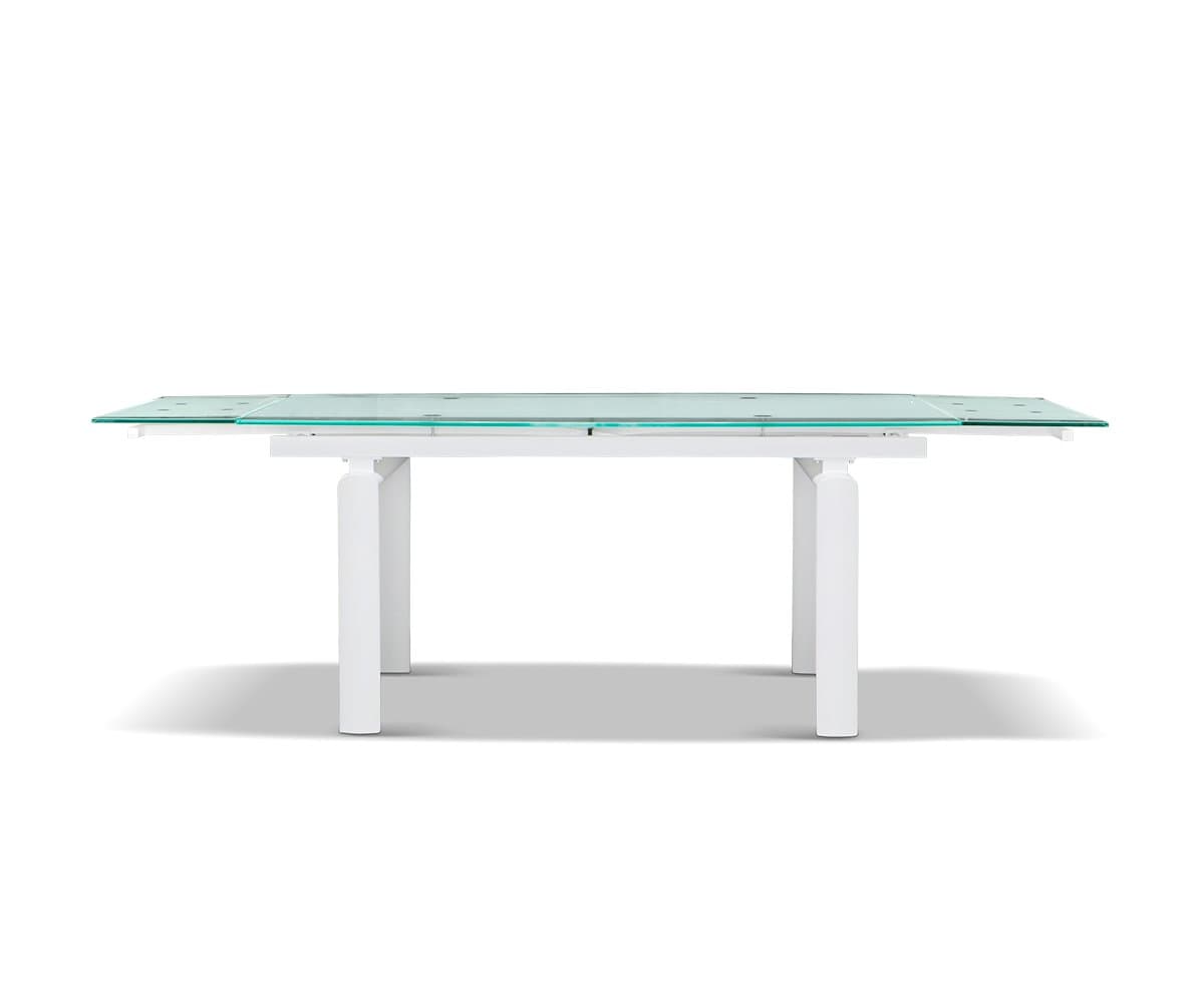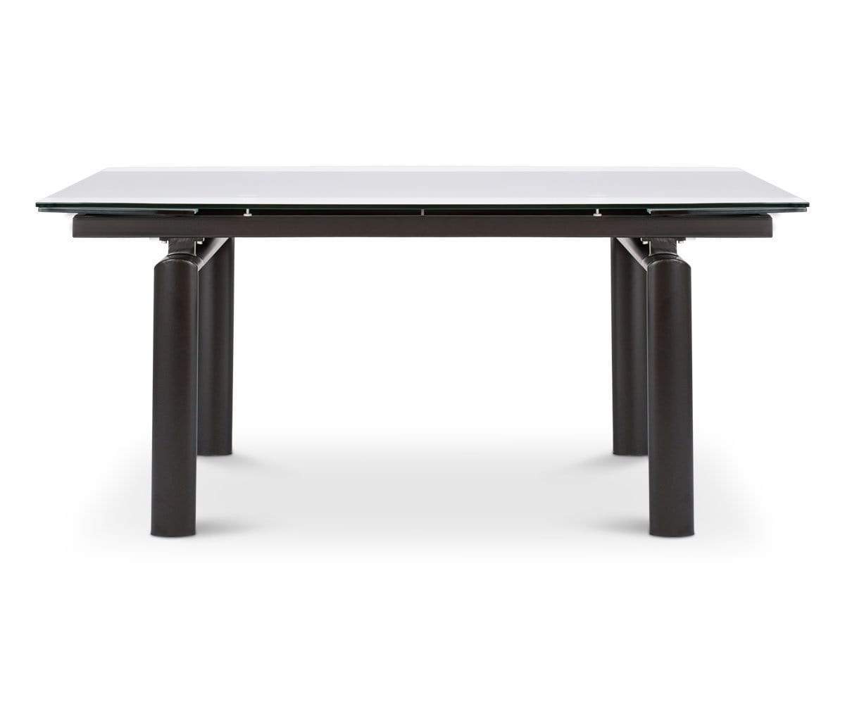 Solid, tempered glass and an angular, metal frame imbue your dining space with a sleek modern aesthetic. Plus, the Hispi can be extended with two leaves to seat up to eight!