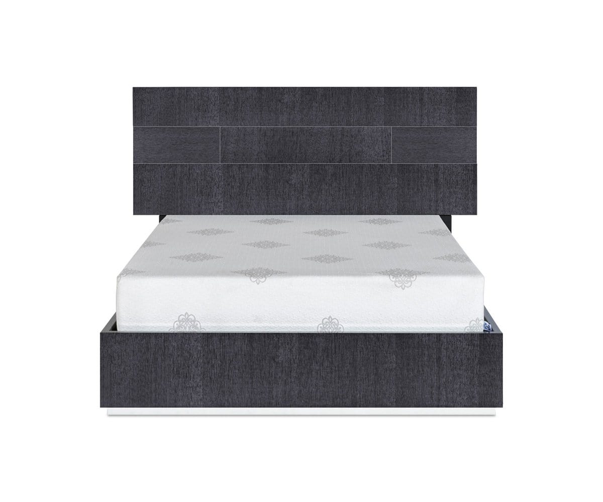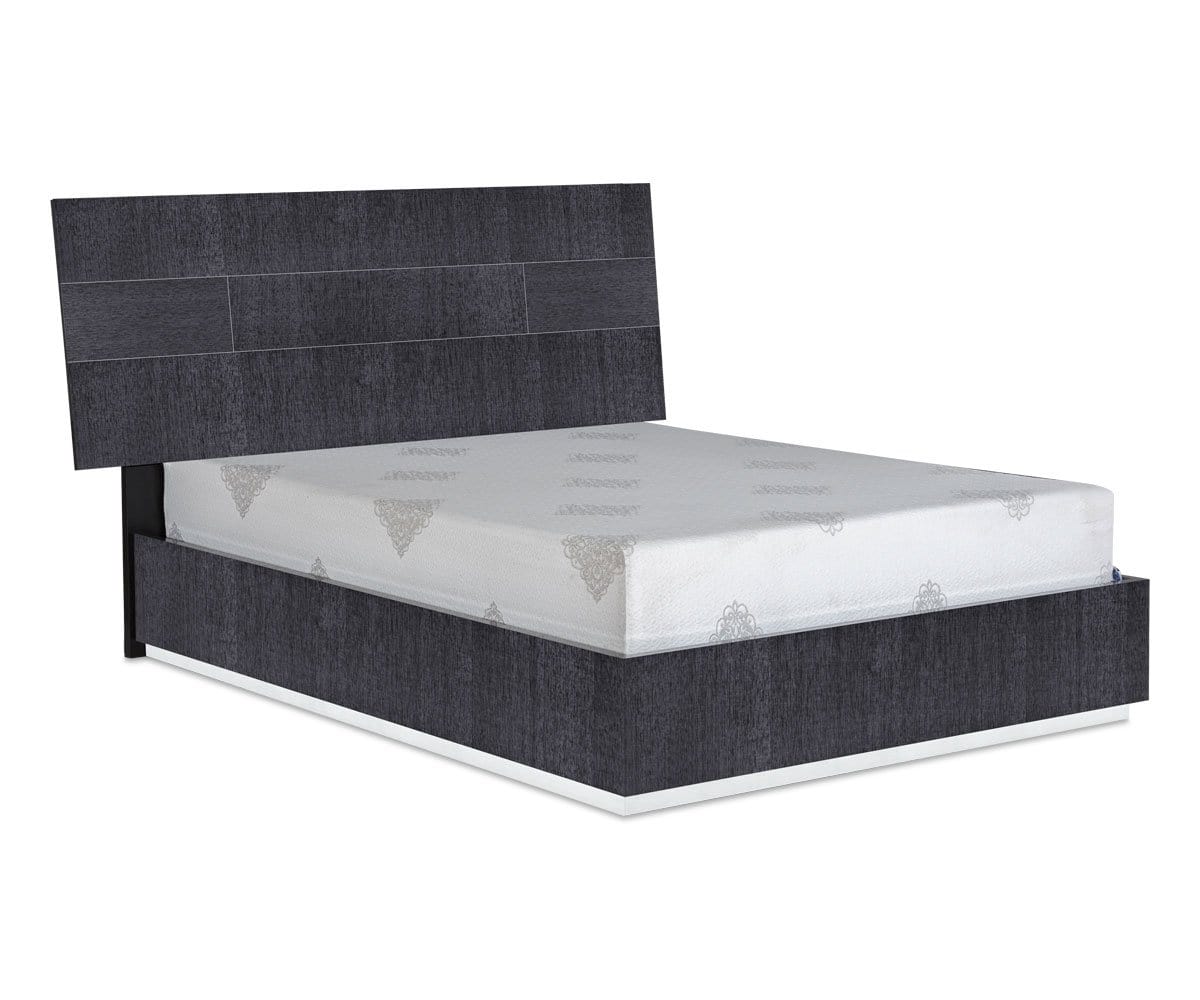 Elegant, bold lines and fine craftsmanship define the Mondiana platform bed. Showcasing grey koto veneer with a high gloss finish that reflects light and adds depth, this piece is sure to be the focal point of any bedroom.