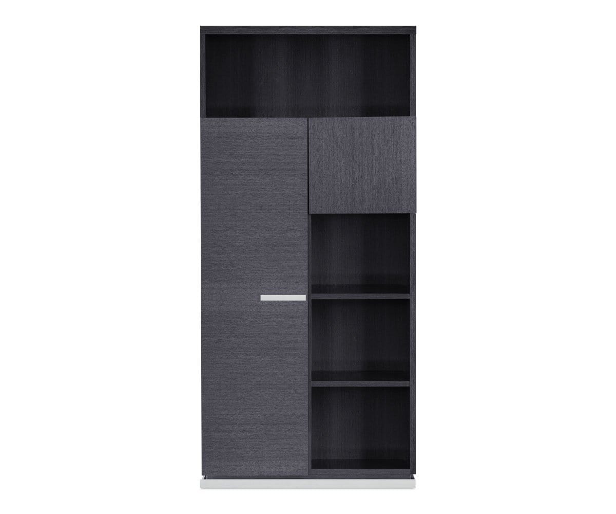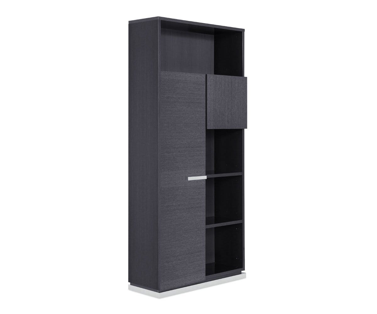 Add visual height and increase the storage potential of any room with the Mondiana library bookcase. Showcasing the beautiful grey koto wood veneer with a high gloss finish and chrome accents gives it a chic, modern vibe. Shelves are adjustable and the two doors interchange for a left or right preference.