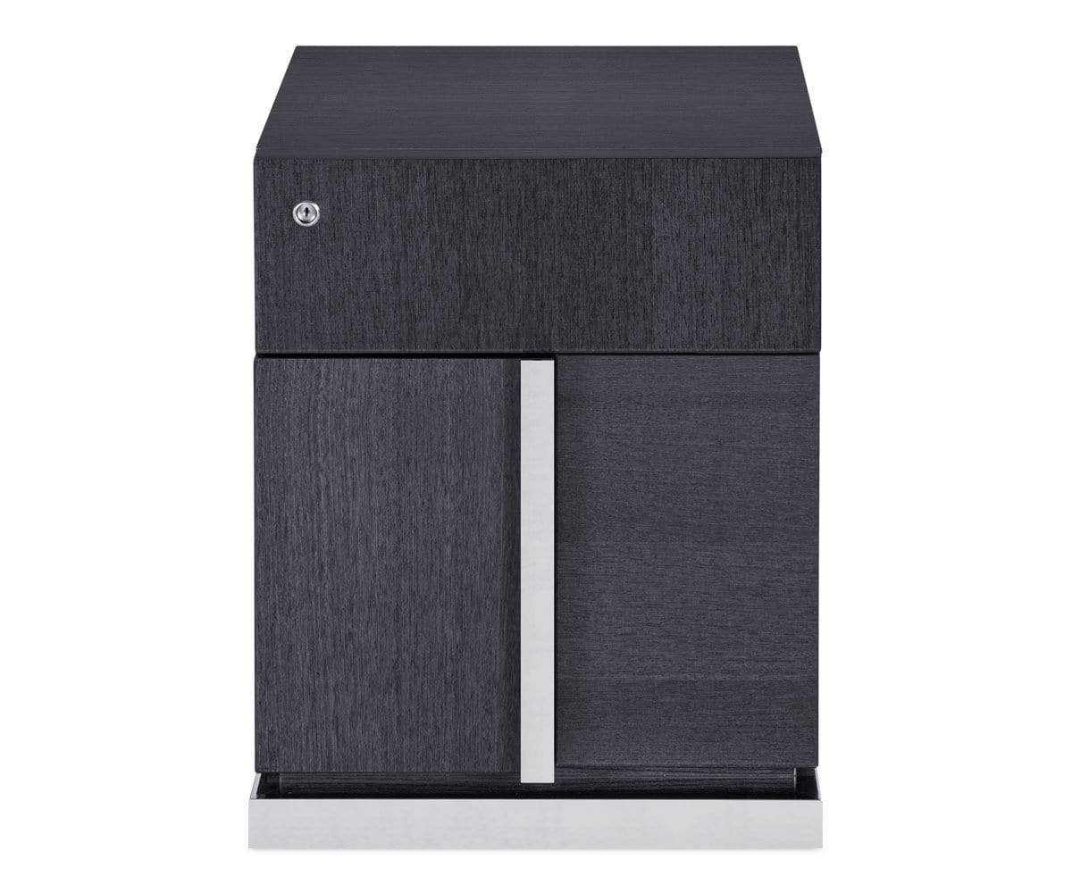 Organize your workspace with the Mondiana pedestal. This office essential features chrome accents and a high gloss koto veneer finish for a chic, modern vibe. The top drawer and lower hanging file drawer both feature a locking system and soft track closures.